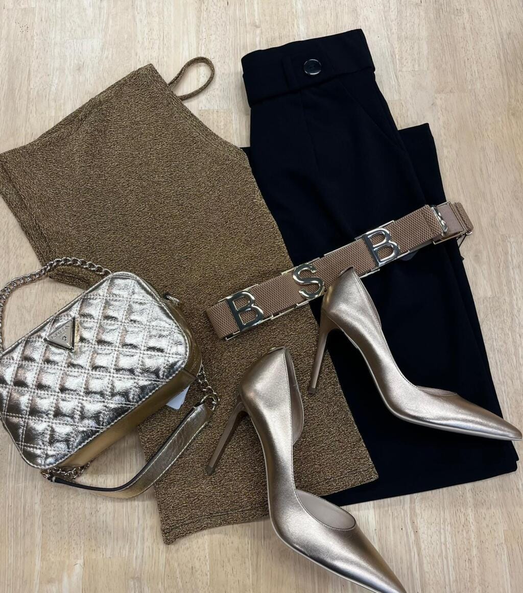 - Petite robe noire et escarpins dorés : Un classique indémodable. Une petite robe